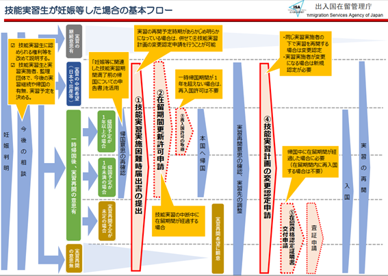 出典:出入国在留管理庁「技能実習生が妊娠等した場合の基本フロー」
