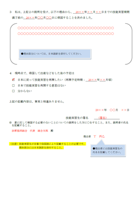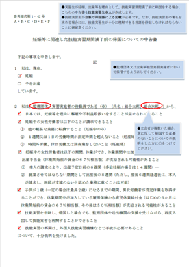 「妊娠等に関連した技能実習期間満了前の帰国についての申告書」